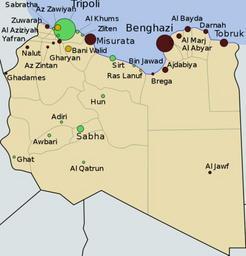| Keywords: Libyan Uprising scratchmap.svg Libyan uprising en Libyan_Uprising svg 2011-03-09 14 53 UTC Libyan_Uprising svg Rafy en User Interchange88 derivative work WikiDao <span class signature-talk >talk</span> clashes in Ras Lanuf per http //english aljazeera net/news/africa/2011/03/201139138156335 html WikiDao Libyan_Uprising svg Cc-zero Original upload log This image is a derivative work of the following images File Libyan_Uprising svg licensed with Cc-zero 2011-03-09T11 51 36Z War dog 339x354 33933 Bytes <nowiki>Correct city colors</nowiki> 2011-03-08T15 36 23Z Rafy 339x354 52654 Bytes <nowiki>Gharyan under opposition's control Ras Lanuf and Bin Jawad are stable under Gaddafi's and opposition's control Fighting reported in Zawia as both sides control parts of the town </nowiki> 2011-03-07T11 01 33Z Giornorosso 339x354 51301 Bytes <nowiki>Some city names changed</nowiki> 2011-03-06T16 18 47Z U5K0 339x354 51247 Bytes <nowiki>misrata successfully defended by rebels</nowiki> 2011-03-06T14 32 47Z U5K0 339x354 51213 Bytes <nowiki>change as per timeline article on english wikipedia</nowiki> 2011-03-06T10 57 26Z U5K0 339x354 51178 Bytes <nowiki>changes as per http //www libyafeb17 com/</nowiki> 2011-03-05T22 31 38Z Magog the Ogre 339x354 52433 Bytes <nowiki> The source by no means says Sirt was taken by opposition - it makes only vague references to clashes - changing to yellow although IMHO it should be green until there is more confirmation</nowiki> 2011-03-05T22 29 43Z Yoman82 339x354 53053 Bytes <nowiki>I think I finally got it</nowiki> 2011-03-05T22 20 50Z Yoman82 339x354 52395 Bytes <nowiki>Got it this time I think citation http //blogs aljazeera net/live/africa/live-blog-libya-march-5 Live blog Libya Al Jazeera Africa Live 2011-3-5 </nowiki> 2011-03-05T22 09 49Z U5K0 339x354 51091 Bytes <nowiki>Reverted to version as of 15 36 5 March 2011----- Reference </nowiki> 2011-03-05T22 09 35Z Magog the Ogre 339x354 51091 Bytes <nowiki>Reverted to version as of 15 36 5 March 2011 - ya done goofed</nowiki> 2011-03-05T22 07 03Z Yoman82 512x535 331590 Bytes <nowiki>Updated to include capture of Sirt by opposition</nowiki> 2011-03-05T15 36 31Z U5K0 339x354 51091 Bytes <nowiki>Bin Jawad</nowiki> 2011-03-04T20 41 38Z U5K0 339x354 50417 Bytes <nowiki>ras lanuf lierated</nowiki> 2011-03-04T14 50 36Z Rafy 339x354 50039 Bytes <nowiki>update</nowiki> 2011-03-04T13 41 03Z Rafy 339x354 49174 Bytes <nowiki>Ras Lanuf and Zawia under attack</nowiki> 2011-03-03T22 45 25Z Rafy 339x354 48809 Bytes <nowiki>Dark Border</nowiki> 2011-03-03T20 29 00Z Rafy 339x354 41068 Bytes <nowiki>changed to beige as it should improve the contrast removed Tajura it is effectively a suberb of Tripoli Added Al Abya </nowiki> 2011-03-02T22 29 03Z Rafy 339x354 38414 Bytes <nowiki>oops</nowiki> 2011-03-02T22 11 41Z Rafy 339x354 35936 Bytes <nowiki>uploaded wrong one</nowiki> 2011-03-02T22 10 02Z Rafy 339x354 35936 Bytes <nowiki>More accurate city scales Updates </nowiki> 2011-03-02T20 57 26Z Magog the Ogre 339x354 36812 Bytes <nowiki> Brega Adjabiya and Bani Walid per the talk page</nowiki> 2011-03-02T11 12 39Z Rafy 339x354 35936 Bytes <nowiki>Colour tweaks Gharyan Sebrata Brega and Ajdabia under attack</nowiki> 2011-03-02T10 32 38Z Transparent 6lue 339x354 32868 Bytes <nowiki>Reverted to version as of 19 39 1 March 2011 it's called Tripoli </nowiki> 2011-03-02T10 18 48Z Giornorosso 339x354 32861 Bytes <nowiki>Ajdabiya contested</nowiki> 2011-03-02T10 17 00Z Giornorosso 339x354 32861 Bytes <nowiki>Gharyan captured by Ghaddafi</nowiki> 2011-03-01T19 39 14Z U5K0 339x354 32868 Bytes <nowiki>misrata in rebbel hands still </nowiki> 2011-03-01T19 28 17Z U5K0 339x354 32810 Bytes <nowiki>zawiya in rebel hands after repelling attacks</nowiki> 2011-03-01T12 21 03Z Rafy 339x354 32406 Bytes <nowiki>Black border makes light green more visible over a grey background </nowiki> 2011-03-01T12 04 56Z Rafy 339x354 31875 Bytes <nowiki>corrected position of khums and zliten added a better green as per discussion added grey border do distinguish overlapping cities aziziya and tripoli for example </nowiki> 2011-03-01T07 38 13Z Magog the Ogre 339x354 34210 Bytes <nowiki> kill red border per complaint on talk page</nowiki> 2011-03-01T03 51 03Z Rafy 339x354 33791 Bytes <nowiki>colours improve scales based on http //www world-gazetteer com/wg php x 1298950805 men glay lng en des gamelan geo -133 srt dpnn col abcdefghimoq msz 1500 this source</nowiki> 2011-03-01T03 20 06Z JasonAQuest 339x354 27052 Bytes <nowiki>restore city sizes</nowiki> 2011-03-01T02 26 10Z Rafy 339x354 31644 Bytes <nowiki>Tripoli to green and and Misrata and Zawia to yellow</nowiki> 2011-03-01T02 16 10Z Rafy 339x354 32189 Bytes <nowiki>Colourblind friendly updated situation Ghadamis and Bani Walid were never under opposition control </nowiki> 2011-02-28T20 46 05Z Gryffindor 339x354 28395 Bytes <nowiki>the large dots make reading the city names difficult also some are too small</nowiki> 2011-02-28T19 30 49Z Interchange88 339x354 27375 Bytes <nowiki>Reverted to version as of 03 36 28 February 2011 drive-by edit no reasons no discussion</nowiki> 2011-02-28T15 13 46Z Gryffindor 339x354 28395 Bytes <nowiki>Reverted to version as of 20 15 27 February 2011</nowiki> 2011-02-28T03 36 14Z JasonAQuest 339x354 27375 Bytes <nowiki>scale cities according to size</nowiki> 2011-02-27T20 15 42Z JasonAQuest 339x354 28395 Bytes <nowiki>neutral background</nowiki> 2011-02-27T17 36 21Z Rafy 339x354 54770 Bytes <nowiki>Using one colour for the map as per discussion</nowiki> 2011-02-27T17 06 02Z Rafy 339x354 54768 Bytes <nowiki>Colour tweaks Al Aziziya still controlled by Gaddafi </nowiki> 2011-02-27T14 48 05Z U5K0 338x354 57558 Bytes <nowiki>Al Zawiya liberated as per BBC Al Jazeera see article talk page </nowiki> 2011-02-27T14 22 17Z Rafy 338x354 56608 Bytes <nowiki>Bigger bullets</nowiki> 2011-02-27T11 00 26Z Rafy 387x354 58251 Bytes <nowiki>tweaks</nowiki> 2011-02-27T01 56 45Z Rafy 387x354 66921 Bytes <nowiki>