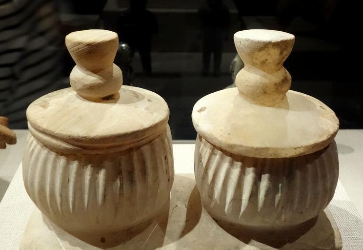 Keywords: Lidded containers on a stand, Mexico, Teotihuacan, c. 200-750 AD, travertine - De Young Museum - DSC00543.JPG en Exhibit in the De Young Museum San Francisco California USA This artwork is in the public domain because the artist died more than 70 years ago Photography was permitted in the museum without restriction 2013-11-05 15 25 46 own Daderot other versions cc-zero Uploaded with UploadWizard Art of the Americas in the De Young Museum Archeological objects of Teotihuacán |