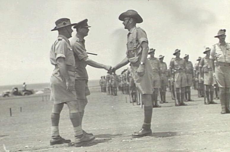 | Keywords: Lieutenant-Colonel R.J.H. Risson, commander of Royal Engineers 9th Australian Division, shaking hands with The Duke of Gloucester before the Duke inspects the engineers, Tripoli, Syria, 1942..JPG from Australian War Memorial <br /> TRIPOLI SYRIA 1942-05-19 REVIEW OF THE 9TH AUSTRALIAN DIVISION BY HIS ROYAL HIGHNESS THE DUKE OF GLOUCESTER LIEUT-COLONEL R J H RISSON COMMANDER ROYAL ENGINEERS 9TH AUSTRALIAN DIVISION SHAKING HANDS WITH THE DUKE OF GLOUCESTER BEFORE THE DUKE INSPECTS THE ENGINEERS 1942-05-19 Australian War Memorial - http //www awm gov au/collection/024271/ author other versions Custom license marker 2014 11 11 PD-Australia PD-Syria Uploaded with UploadWizard Robert Joseph Henry Risson Prince Henry Duke of Gloucester Images from the Australian War Memorial |