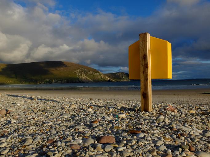 Keywords: lifebelt beach pebble achill iceland clouds sky lonely