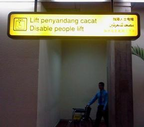 Keywords: Lift penyandang cacat.jpg en Elevator for disabled passenger in Soekarno Hatta Airport id Lift untuk penyandang cacat di bandara soekarno hatta jakarta own Serenity 2011-08-06 Cc-zero Soekarno-Hatta International Airport Elevator signs Airport elevators