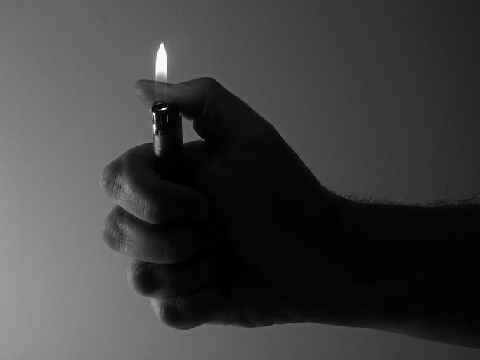 Keywords: lighter flame hand keep thumb light burn kindle black white