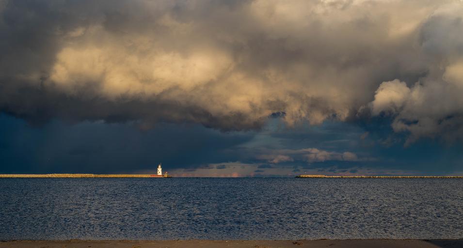 Keywords: lighthouse landscape lake michigan light overcast clouds water outdoors landmark navigation safety scenic beacon waves dark skies maritime shore seascape