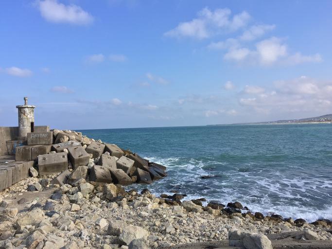 Keywords: lighthouse rocks seashore sea coastline cliff waves rocky blue outdoors seascape marine