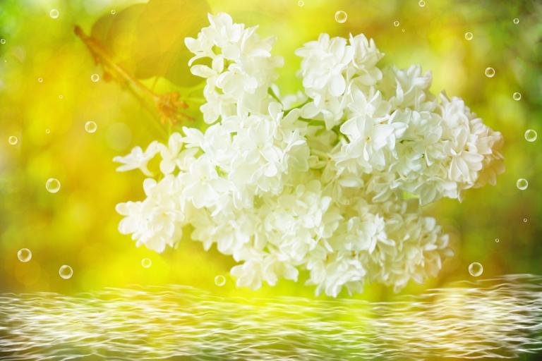 Keywords: lilac blossom bloom white water soap bubbles bokeh