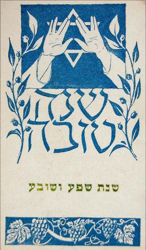 Keywords: Lilien Shana Tovah.jpg en Bezalel Shana Tova Card Late 19th or early 20th century http //www ebay com/itm/1950s-LILIEN-Bezalel-SHANA-TOVA-Card-ISRAEL-Judaica-/270496422681 Ebay Ephraim Moshe Lilien other versions PD-Art Religious themes by Ephraim Moshe Lilien Jewish New Year cards Birkat Kohanim |