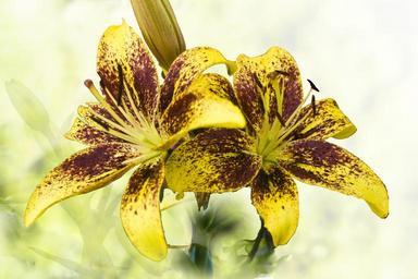 Keywords: lilies yellow brown speckled greeting background map greeting card flower blossom bloom