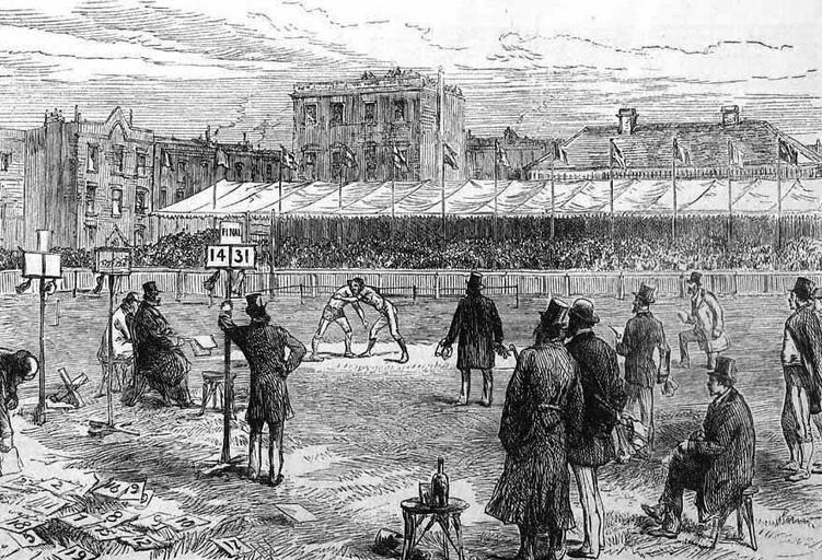 | Keywords: Lillie Grounds.jpg A group of men watching Cumberland and Westmoreland wresting at the Lillie Bridge Ground on Good Friday in London http //www lookandlearn com/history-images/XJ103587/Cumberland-and-Westmoreland-wresting-at-the-Lillie-Bridge-Ground-on-Good-Friday img 4991 link 01~Original_artwork/Peter_Jackson_Collections author PD-old Uploaded with UploadWizard Sports culture ILN 1875 Sport in the London Borough of Hammersmith and Fulham Lillie Bridge Grounds 1875 in London | ||||