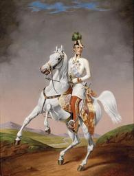 Keywords: Lilly König Portrait Franz Joseph.jpg signiert und datiert L König 1855 rückseitig bezeichnet Andenken von Herrn Rittmeister V Dabsch 1856 1855 Oil on canvas cm 56 5 43 Institution http //www dorotheum com PD-old-100 DEFAULTSORT Franz Joseph I;1855 Images from Dorotheum Paintings of Franz Joseph I of Austria 1855 1855 portrait paintings Male 19th-century oil equestrian portraits of men in military uniforms 1855 19th-century female painters Paintings of white horses Portrait paintings of men wearing bicorne hats 1855 Portrait paintings of men with swords 1855 Sashes of chivalric orders in portrait paintings 1855 Stars of chivalric orders in portrait paintings 1855 |