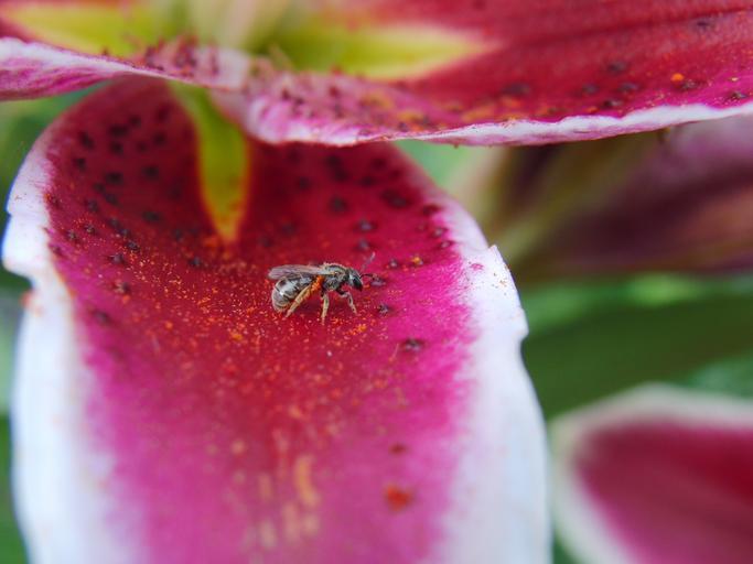 Keywords: lily flower small bee summer nature plant floral green blossom bloom petal garden spring leaf flora pink
