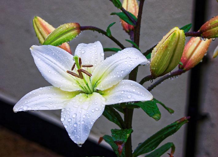 Keywords: lily flower yellow green nature plant floral blossom color garden natural bloom petal botanical white dew gardening delicate leaf bud