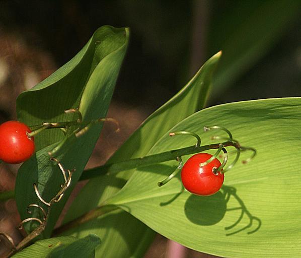 Keywords: lily of the valley fruit autumn red fruiting sprig foliage green garden the stem shadows flora clear gloss