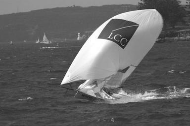 Keywords: LincolnCrowne 12ftSkiff SharkIsland.jpg en 12 foot skiff Lincoln Crowne flying past Shark Island on Sydney Harbour in a summer North Easterly trade wind own Ballistic88 2010-11-14 12 foot skiff Sailing in Australia 2010 in sailing Black and white photographs |
