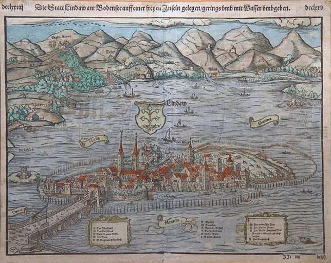 Keywords: Lindau im Bodensee alte Ansicht.jpg Lindau im Bodensee nicht näher bezeichnete alte Ansicht bitte Beschreibung nachtragen sofern bekannt Nachträglich kolorierter Holzschnitt aus Sebastians Münsters Cosmographia die zwischen 1544 und 1621 in Basel in zahlreichen Ausgaben erschien Die Ansicht von Lindau ist in vielen Ausgaben enthalten Die Seitenzahlen 774-775 entsprechen z B der Abbildung auf Seiten 774-775 der Ausgabe von 1588 die mit dem Titel Cosmographey erschien PD-Art Source http //www auction de/ History of Lindau Bodensee Lake Constance in art Images by Nagel Auktionen Cosmographia Artworks missing infobox template |