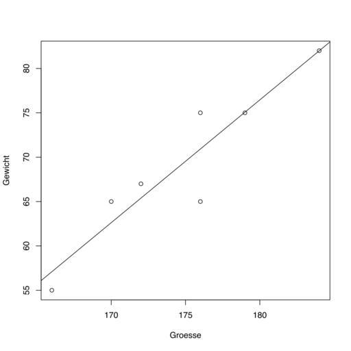Keywords: Linear regression plot with R.svg R-Code erzeugt <source lang rsplus > Groesse <- c 176 166 172 184 179 170 176 Gewicht <- c 65 55 67 82 75 65 75 fit<-lm Gewicht~Groesse svg linear_regression_plot svg plot Gewicht~Groesse abline fit dev off </source> Created with R 2012-02-18 own Rosentod cc-zero Uploaded with UploadWizard Check categories 2015 July 5 GNU R