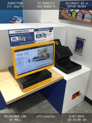 Imagine you want to print instant photos from the KODAK machine at Officeworks (QV Mall, Melbourne city, VIC, Australia).