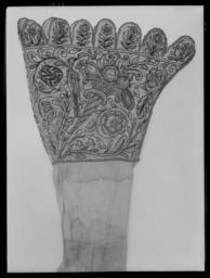 Keywords: Linnestrumpa, strövling - Livrustkammaren - 77190.tif Strumpa av tuskaftat linne trådtäthet 37x37 per cm2 Tillskuren i fyra delar två kragstycken ben och fot som är hopsydda med efterstygn Kragens övre kant avslutas med 14 flikar formade som bågar Formen påminner om reticella-spetsens bågformade kanter Den är fodrad med ett grövre linne som skyddar broderiets baksida Kragens höjd är 28 cm och dess övre omkrets 68 cm Broderade i svart silke och guldtråd huvudsakligen i stjälkstygn Motivet är lika på kragens båda sidor Huvudmotivet är ett ymnighetshorn med frukter som äpple päron och druvor Vid sidan av hornet en fågel Den återstående ytan täcks av slingrande blad och stjälkar samt blommor som tulpan ros och liljekonvalj På varje flik på kragen är en liten blomma broderad Motiven är dekorerade med guldtrådar lan på silkekärna som sytts i flätmönster Över sömmarna och kring den övre kanten ligger ett slätt guldband Broderiet överensstämmer med den engelska typen av broderi med svart tråd som man kan se på linneplagg från sent 1500-tal och tidigt 1600-tal Strumpans ben respektive fot är skurna på snedden för att ge bättre elasticitet och passform Benstycket har en liten triangulär skarvbit placerad vid mittbaksömmen uppe vid kragen Foten är skarvad framme vid tån Stockings or w Boothose en of linen 37x37 thread count per square cm Cut into four parts two cuffs legs and feet which are sewn with backstitch The upper edge of the cuff ends with 14 arch-shaped tabs The shape of the tabs is reminiscent of reticella needlelace -edgings The cuff is lined with a coarse linen that protects the back of the embroidery The cuff height is 28 cm and its upper circumference is 68 cm The cuffs are embroidered in black silk and gold wire primarily in stem stitch The motif is the same on both sides of the collar The main subject is a cornucopia with fruits incluidng apples pears and grapes At the side of the horn is a bird The remaining area is covered by meandering leaves and stems and flowers such as tulips roses and lily of the valley Each tab on the collar has a small embroidered flower The motifs are decorated with gold threads gold-wrapped silk core sewn in a cable pattern Over the seams and around the top edge is a plain gold band The embroidery is consistent with the English type of embroidery with black thread blackwork that can be seen on the linen garments from the late 1500s and early 1600s The sock and foot pieces are cut on the bias to provide better elasticity and fit The leg pice has a small triangular gusset from the middle of the back seam up to the cuff The foot is seamed in front of the toe original caption linnestrumpa strövl original caption linnestrumpa strövling - LRK 31124 Slaget vid Lützen 1632 size mm 630 häl-krage size mm 280 krage size mm 320 fot g 116 LRK Gustav II Adolf av Sverige Modelejon 2002 Jubileumsutst Lützen-Kapelle 2007 2007 place of origin original filename LN_A01459_001459 67690 inventory number LRK 31124 77190 CC0 Linnestrumpa strövling - Livrustkammaren - 77190-negative tif <gallery caption Different images of same object > File Linnestrumpa strövling - Livrustkammaren - 68631 tif File Linnestrumpa - Livrustkammaren - 25703 tif File Linnestrumpa buren av Gustav II Adolf i slaget vid Lützen - Livrustkammaren - 35185 tif File Linnestrumpa strövling - Livrustkammaren - 77191 tif File Linnestrumpa strövling - Livrustkammaren - 8705 tif File Linnestrumpa buren av Gustav II Adolf i slaget vid Lützen - Livrustkammaren - 43744 tif File Linnestrumpa strövling - Livrustkammaren - 146 tif File Linnestrumpa strövling - Livrustkammaren - 60069 tif File Linnestrumpa strövling - Livrustkammaren - 147 tif File Linnestrumpa buren av Gustav II Adolf i slaget vid Lützen - Livrustkammaren - 52304 tif File Linnestrumpa buren av Gustav II Adolf i slaget vid Lützen - Livrustkammaren - 26624 tif File Linnestrumpa strövling - Livrustkammaren - 17267 tif </gallery> < Clothes of Gustav II Adolf Stockings Linen clothing Blackwork embroidery 1630s fashion Embroidered clothing Media contributed by LSH dim-with multiple size templates Media contributed by LSH unmatched objKeyword Stockings in Livrustkammaren Media contributed by LSH 2013-10 |