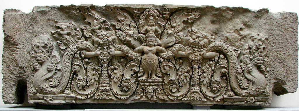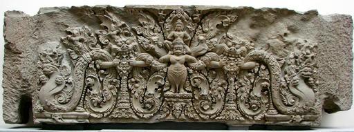 Keywords: Linteau Musée Guimet 25971.jpg Linteau Cambodge Prasat Kok Po A Angkor province de Siemreap style de Preah Ko fin du 9ème siècle grès Vishnou chevauchant Garuda entre deux têtes monstrueuses; aux extrémités Nagas maîtrisés par Garuda Own 2007-09-25 Vassil Art of Cambodia in the Musée Guimet Sculptures from Cambodia Reliefs of Angkor Vishnu in Khmer sculpture |