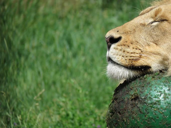 Keywords: lion calgary zoo animal ball mammal cute outdoors nap
