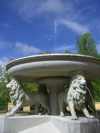 Keywords: lion fountain fountain schlossgarten hohenschwangau sky blue