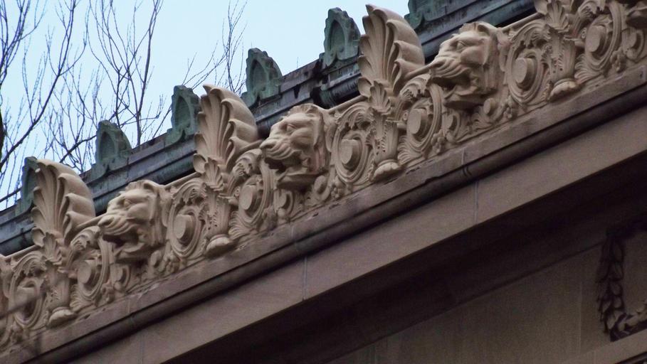 Keywords: lion heads gargoyles water spouts roof sculpture decorative architecture