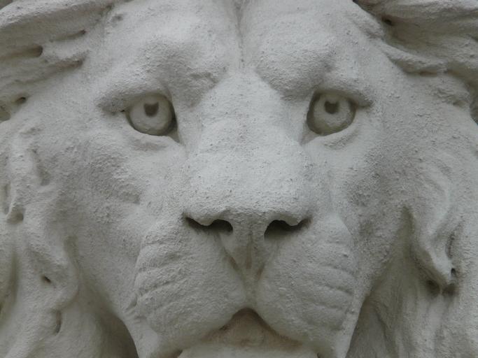 Keywords: lion statue fig gypsum white animal face portrait close chalk figure