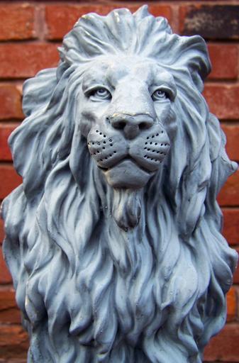 Keywords: lion statue figure stone animal feline blue red gray