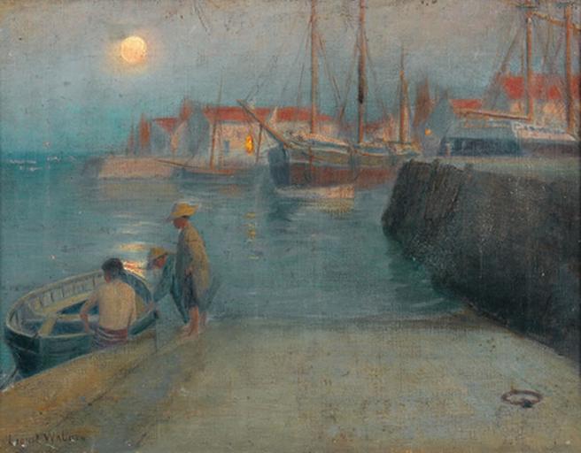 Keywords: Lionel Walden - Hafenpartie im Mondlicht.jpg de Hafenpartie im Mondlicht oil canvas cm 27 35 Dobiaschofsky Auktionen Bern 10 11 2010 lot 422 Creator Lionel Walden not given PD-old-auto 1933 Images from Dobiaschofsky Auktionen Lionel Walden Impressionist paintings of boats Paintings of sailboats Oil paintings of watercraft |