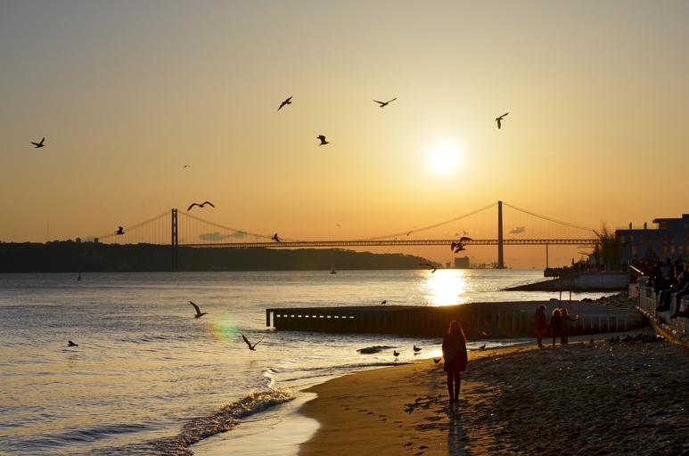 Keywords: lisbon bridge river sunset city portugal light the bridge in lisbon