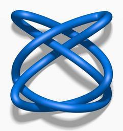 Keywords: Lissajous 5 2 Knot.png Created with Persistence of Vision en A Lissajous 5<sub>2</sub> knot own Jim belk 2010-03-27 Source This image was created using POV-Ray for Windows version 3 6 The image was rendered to an 1800 x 1800 square using 0 3 anti-aliasing and then cropped and compressed using pngcrush <pre> include colors inc background color White global_settings assumed_gamma 1 0 camera location <0 0 -25> right <1 0 0> up <0 1 0> look_at <0 0 0> angle 5 light_source <0 20 -50> color White area_light <5 0 0> <0 5 0> 10 10 / very slow decrease 10 to 2 for experiments / adaptive 3 declare r_tube 0 07; declare num_steps 36; declare step_size 1/num_steps; sphere_sweep cubic_spline num_steps+3 declare N -1; while N < num_steps + 1 declare theta 2 pi N step_size; < 0 75 cos 3 theta + 0 7 0 75 cos 2 theta + 0 2 + 0 1 0 3 cos 7 theta > r_tube declare N N + 1; end pigment color rgb <0 0 25 1> finish ambient 0 15 diffuse 0 85 brilliance 2 phong 0 25 phong_size 5 plane <0 0 -1> -0 4 pigment color White finish ambient 0 35 diffuse 0 65 </pre> Three-twist knots Blue knots 3D Lissajous curves Images with Povray source code Knots and links on white background DEFAULTSORT 05 02 |