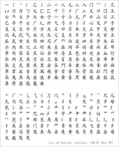 Keywords: List of Unicode radicals.png en en List of unicode radicals Kangxi + supplement own Yug ImageNote 1 531 1345 119 115 2000 2468 2 Unicode have been updated for this character The image should be corrected The legs have to cross the turtle see File é¾ -order gif ImageNoteEnd 1 Unicode Chinese radicals |