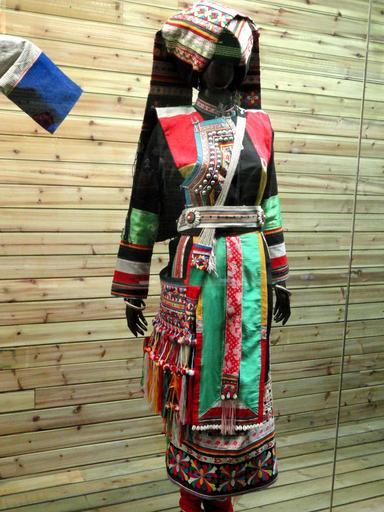 | Keywords: Lisu woman embroidered dress - Yunnan Nationalities Museum - DSC04306.JPG Lisu woman embroidered dress Clothing exhibited in the Yunnan Nationalities Museum Kunming Yunnan China I took this photograph 2011-08-13 02 27 14 Daderot Public domain Clothing in the Yunnan Nationalities Museum Lisu clothing |