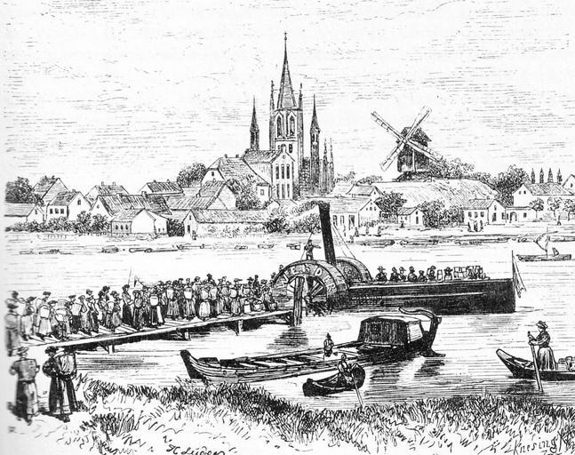 Keywords: Lithographie Obstdampfer Werder 1881.JPG Lithographie Abfahrt des Obstdampfers von Werder nach Berlin Ingeborg Drewitz Hrsg Märkische Sagen Berlin und die Mark Brandenburg Bechtermünz Verlag Lizenzausgabe für Weltbildverlag Augsburg 1998 Seite 149 ISBN 3-86047-206-2 ursprünglich Eugen Diederichs Verlag Düsseldorf 1979 ISBN 3-42400-658-0 1881 Creator H Lüders Author died more than 70 years ago - public domain PD-old Havel in Werder Havel Bockwindmühle Werder People with boats in art Water transport in Germany Lithographs by artists from Germany 1881 lithographs |