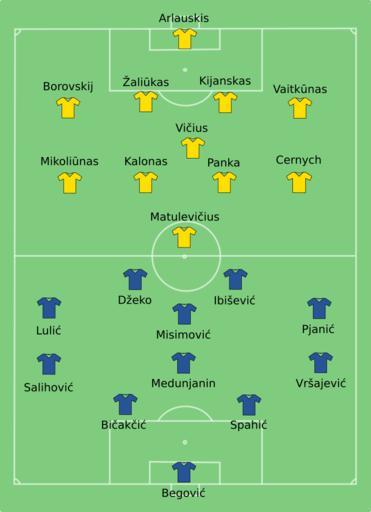 Keywords: Lithuania - Bosna i Hercegovina 0-1 2013 10 15.svg Lithuania - Bosnia-Herzegovina 0 1 15-October-2013 own Golden Bosnian Lily 2013-10-17 Lithuania national football team Bosnia and Herzegovina national football team line-ups