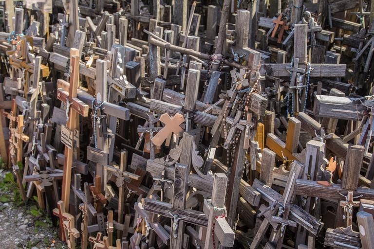 Keywords: lithuania siauliai mountain of crosses cross faith christianity death memorial crucifixion wood symbol christ