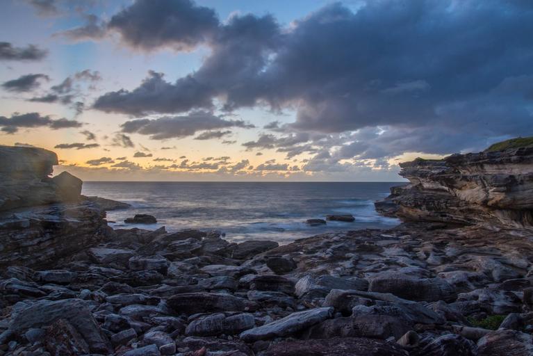 Keywords: little bay sydney australia sunrise ocean sea beach seascape water wave coast coastal marine coastline seaside sky clouds outdoors scenic tranquil weather meteorology cloudscape environment nature day natural outdoor air climate