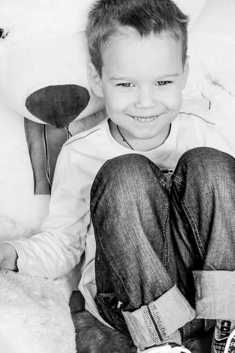 Keywords: little boy baby smile sotting black and white