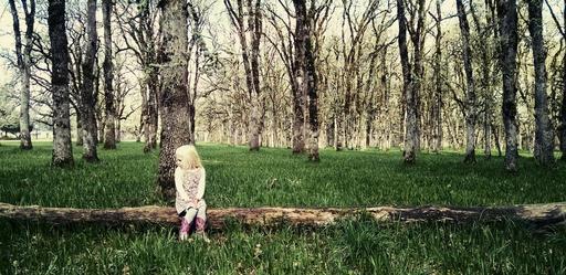 MAKE A MEME View Large Image little girl kid child person small cute childhood nature outdoor forest explore sitting log trunk shy young innocence trees
