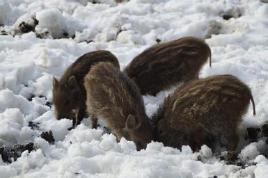 Keywords: little pig wild boars children deer park young child piglet head drawing dig pig digging around foraging snow cold wintry winter brothers and sisters litter