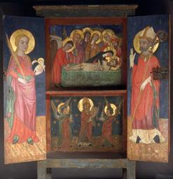Keywords: Liturgical cabinet with the Holy Burial, Saint Agnes and a Bishop Saint - Google Art Project.jpg ~ 1400 466155 Unknown /collection/museu-nacional-dart-de-catalunya/artwork/liturgical-cabinet-with-the-holy-burial-saint-agnes-and-a-bishop-saint-unknown/598421/ author /collection/museu-nacional-dart-de-catalunya/ Museu Nacional d'Art de Catalunya - MNAC Barcelona 497131 http //www mnac cat/ 12/28/2011 4 40 12 PM /collection/museu-nacional-dart-de-catalunya/artwork/liturgical-cabinet-with-the-holy-burial-saint-agnes-and-a-bishop-saint-unknown/598421/ 1400 Religion Tempera and gold leaf on wood True 1785 598421 True 1400 Around 1400 /collection/museu-nacional-dart-de-catalunya/level/ground-floor/2552108/ Ground floor 3/24/2012 7 22 40 AM 015835-000 http //art mnac cat/fitxatecnica html;jsessionid inventoryNumber 015835-000 lang en Museu Nacional d'Art de Catalunya Painting 1400 1410 w820 x h1785 x d388 cm Around 1400 False 0 96484375 Object /collection/museu-nacional-dart-de-catalunya/level/ground-floor/2552108/room-23/591444/ Room 23 liturgical-cabinet-with-the-holy-burial-saint-agnes-and-a-bishop-saint-unknown Liturgical cabinet with the Holy Burial Saint Agnes and a Bishop Saint l 820 Acquired 1922 015835-000 Tempera and gold leaf on wood Religion special url_id TwFoqJvAnN7LTA PD-old-100 Gothic paintings in the Museu Nacional d'Art de Catalunya Google Art Project works by unknown artist