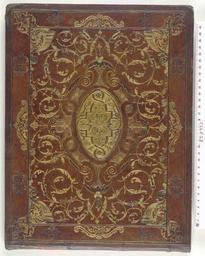 | Keywords: Livre de la Conqueste de la Toison d-Or, - Upper cover (c66f28).jpg Style Centre and cornerpiece; Caption Upper cover; Colour Brown; Edge Unspecified exhibition history Decorative Technique Tooled in gold Tooled in silver; Cover Material Goatskin includes morocco turkey etc Macchi states; third quarter century England F A Bearman N H Krivatsy J F Mowery Fine and historic bookbindings p 58-59 3 3; H M Nixon M M Foot The history of decorated bookbindings fig 30; Österreichische Nationalbibliothek Wien Europäische Einbandkunst p 97 n 171 and for French Renaissance bindings there are unusual lancet shaped tools in the corners and 4 pairs of volutes object history Text 1563; Paris; Unspecified object type Cc-zero place of creation Binding France place of discovery Unspecified British Library image http //www bl uk/catalogues/bookbindings/LargeImage aspx RecordId 020-000006794 ImageId ImageId 43002 Copyright BL Livre de la Conqueste de la Toison d Or Uploaded with GWToolset Livre de la Conqueste de la Toison d Or - Upper cover c66f28 http //www webarchive org uk/bldatasets/bindings/7547_4 jpg Bookbinding 16th-century bookbinding British Library Bookbindings |