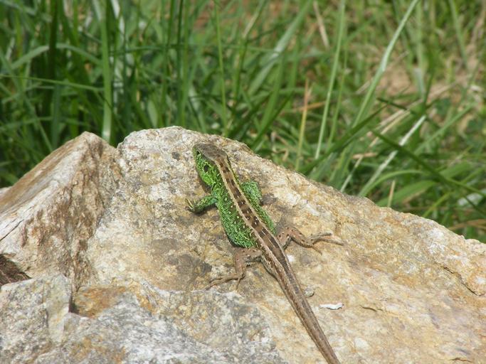 Keywords: lizard animals nature sand lizard green reptile cold blooded animals stone stones granite stones granite chunks of granite summer grass