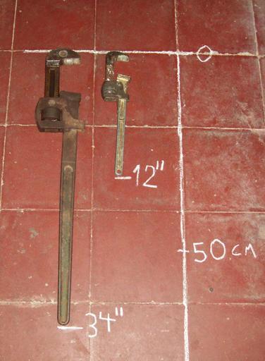 Keywords: Llave Stillson.JPG es Es una foto de dos llaves Stillson la más grande es de 34 pulgadas y la más chica es de 12 pulgadas own Gelpgim22 2009-09-04 Pipe wrenches