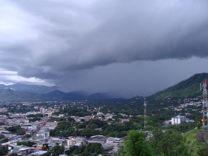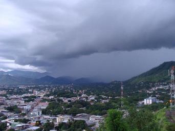 Keywords: Lluvia orográfica.JPG en Orographic rain es Lluvia orográfica en el valle del río Guárico cerca de San Juan de Los Morros Venezuela Los vientos alisios llevan una nube del tipo cumulonimbo que ascendió por el estrechamiento del valle drenado por el río Guárico produciendo una tormenta que afectó a la parte septentrional de la ciudad de San Juan de los Morros own Fev 2008-02-06 Rain San Juan de los Morros