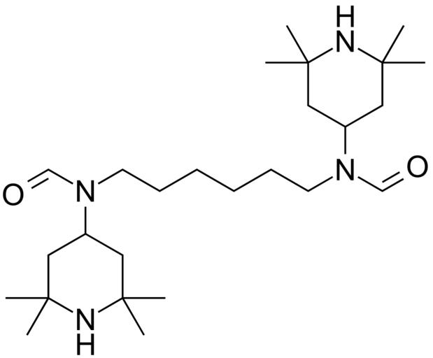 Keywords: LMW-HA(L)S-3.svg validSVG Structure of N N'- hexane-1 6-diyl bis N- 2 2 6 6-tetramethylpiperidin-4-yl formamide Own 2014-03-27 Emeldir <span class signature-talk >talk</span> PD-chem Aging inhibitors Piperidines Formamides
