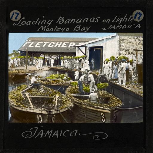 Keywords: "Loading Bananas on Lighters, Montego Bay, Jamaica" early 20th century (imp-cswc-GB-237-CSWC47-LS12-017).jpg en <br> Loading Bananas on Lighters Montego Bay Jamaica early 20th century Image of bananas being loaded onto lighters small boats that were used to transport cargoes to ships Groups of men and women can be seen round the dock carrying bunches of bananas on their heads waiting to be loaded onto the lighters Others are loading up the lighters Until well into the 20th century Montego Bay functioned primarily as a sugar port but also exported bananas Photographer Unknown Filename imp-cswc-GB-237-CSWC47-LS12-017 tif Coverage date after 1900 Part of collection International Mission Photography Archive ca 1860-ca 1960 Type images Part of subcollection Photographs from the Centre for the Study of World Christianity University of Edinburgh U K ca 1900-ca 1940s Repository name Centre for the Study of World Christianity Archival file impaunpub_Volume7/1350 url Geographic subject city or populated place Montego Bay Repository address The University of Edinburgh School of Divinity New College Mound Place Edinburgh EH1 2LX United Kingdom Geographic subject country Jamaica Format aacr2 1 lantern slide 8 x 8 cm Geographic subject continent North and Central America Rights Contact the repository for details Part of series The Jamaican Church in the Bush LS12 Repository email divinity-CSWC ed ac uk Subject lcsh Keyword Commerce; Local foods Date created after 1900 Publisher of the digital version University of Southern California Libraries Subject aat genre external views Format aat lantern slides Legacy record ID impa-m68288 Access conditions http //www ed ac uk/schools-departments/divinity/research/centres/world-christianity/collections-resources File GB 237 CSWC47/LS12/17 after 1900 author http //digitallibrary usc edu/cdm/ref/collection/p15799coll123/id/64470 PD-old-70-1923 Magic lantern images Images from USC Digital Library uploaded by Fæ International Mission Photography Archive ca 1860-ca 1960 Montego Bay |