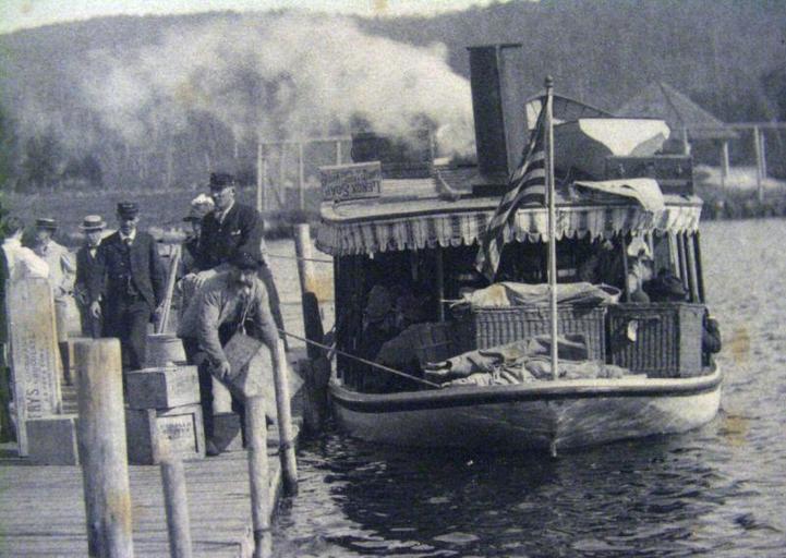 | Keywords: killoquah raquette lake raquettelake adirondacks Four lake steamers named Killoquah plowed the waters of Raquette Lake during the Great Camp era as the Adirondack region drew more well-to-do tourists ever deeper into the wilderness. Their destinations by train, water and stage took them to remote places to "rough it in style" at grand hotels, inns, lodges and hunting camps. The first Killoquah was commissioned in 1879, and the last in 1929. * Photo credit: New York State Digital Archives Four lake steamers named Killoquah plowed the waters of Raquette Lake during the Great Camp era as the Adirondack region drew more well-to-do tourists ever deeper into the wilderness. Their destinations by train, water and stage took them to remote places to "rough it in style" at grand hotels, inns, lodges and hunting camps. The first Killoquah was commissioned in 1879, and the last in 1929. * Photo credit: New York State Digital Archives |