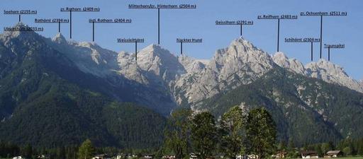 Keywords: Loferer Steinberge Panorama Süd-West.jpg en Loferer Steinberge view from south-west with annotated Peaks de Panorama der Loferer Steinberge aus Süd-West mit Gipfelbeschriftung own Stefanski 2009-10-14 Eigenes Bild neu bearbeitet Beschriftungen Format Loferer Steinberge |