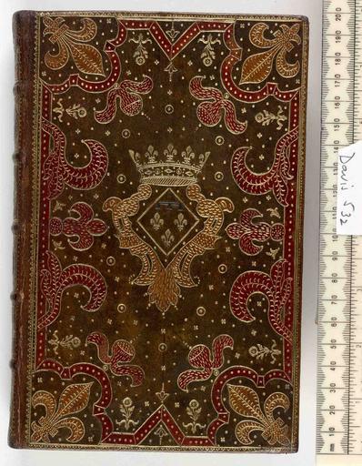 Keywords: L'office de la Semaine Sainte...a l'usage de Rome et de Paris - Upper cover (Davis532).jpg Style Armorial Fleur de lis Floral; Caption Upper cover; Colour Brown; Edge Marbled under gilt exhibition history Decorative Technique Tooled in gold Tooled in silver Mosaic; Cover Material Goatskin includes morocco turkey etc 2 ribbon markers one blue one green Louise Adelaide was the daughter of Philippe II Duke of Orleans The doublures are tooled in silver The edges are marbled and gilt Red silk and white endleaves The binding may be by Duseuil or Padeloup See M M Foot The Henry Davis Gift vol I London 1978 p 195 A very similar example on Voltaire La Henriade London Woodman Lyon 1728 is suggested by M Breslauer Catalogue 102 p 128-129 n 79 object history Text 1716; Paris; Louise Adelaide Mademoiselle of Orleans object type Cc-zero place of creation Binding France place of discovery For 18c French bindings see Giles Barber The James A De Rothschild Bequest at Waddesdon Manor Printed Books Bookbindings Buckinghamshire 2013 L -M MichonLa reliures mosaiquée M M Foot The Henry Davis Gift vol III British Library image http //www bl uk/catalogues/bookbindings/LargeImage aspx RecordId 020-000002470 ImageId ImageId 40840 Copyright BL L'office de la Semaine Sainte a l'usage de Rome et de Paris Uploaded with GWToolset L'office de la Semaine Sainte a l'usage de Rome et de Paris - Upper cover Davis532 http //www webarchive org uk/bldatasets/bindings/5329_4 jpg Bookbinding 18th-century bookbinding British Library Bookbindings |