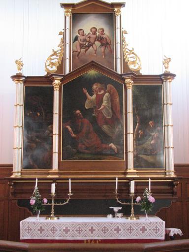 Keywords: Lofoten Cathedral 09.jpg en Vågan Church Lofoten Cathedral in Kabelvåg Norway Altar piece from 1869/70 by Frederik Nicolai Jensen 1818-1870 vicar painter and member of Stortinget Triptyk with scenes fron Getsemane There is a fourth painting at the top with angels no Vågan kirke Lofotkatedralen i Kabelvåg Altertavlen er malt av Frederik Nicolai Jensen 1818-1870 prest maler og stortingsrepresentant Tavlen sto ferdig i 1869-1870 Den er en triptykon med motiver fra Jesu kamp i Getsemane Over de tre bildene i er et fjerde bilde som forestiller engler som venter med seierskransen own 2011-06-14 19 03 28 Rünno Interior of Vågan kirke Reredos in Norway Triptychs June 2011 in Norway |